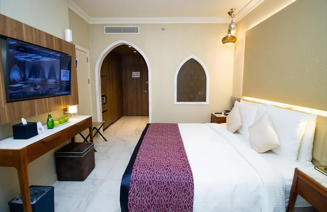 The hotel boasts a prime location within 10 km of Al Haramin "Mina 1 " train station. The cubical Kaaba Shrine is within a few blocks of the Tilal Jabal Al Kabah Mecca, while Um Al-Qurah 7 bus stop is about 15 minutes' walk away. The accommodation is nestled 100 km from Jeddah King Abdul Aziz International airport.